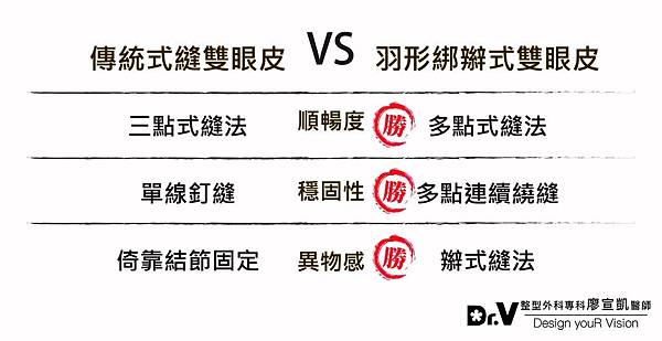 傳統式縫雙眼皮與羽形綁辮式雙眼皮的差異